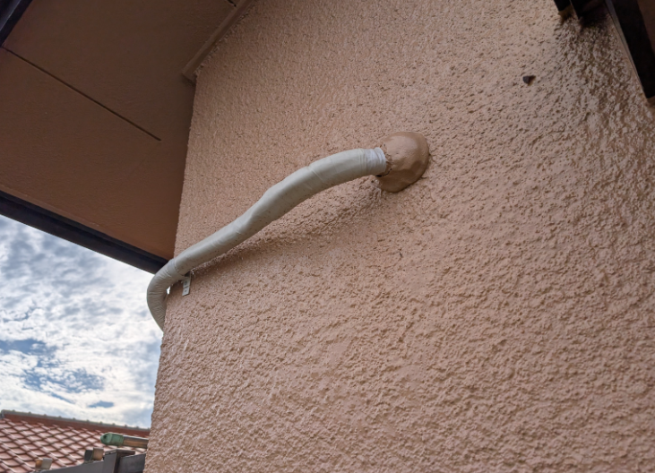 しかし、現場で確認したところ、幸いにも窓から手を伸ばせば何とか手の届く位置に配管の先端(配管出口)がありました✨